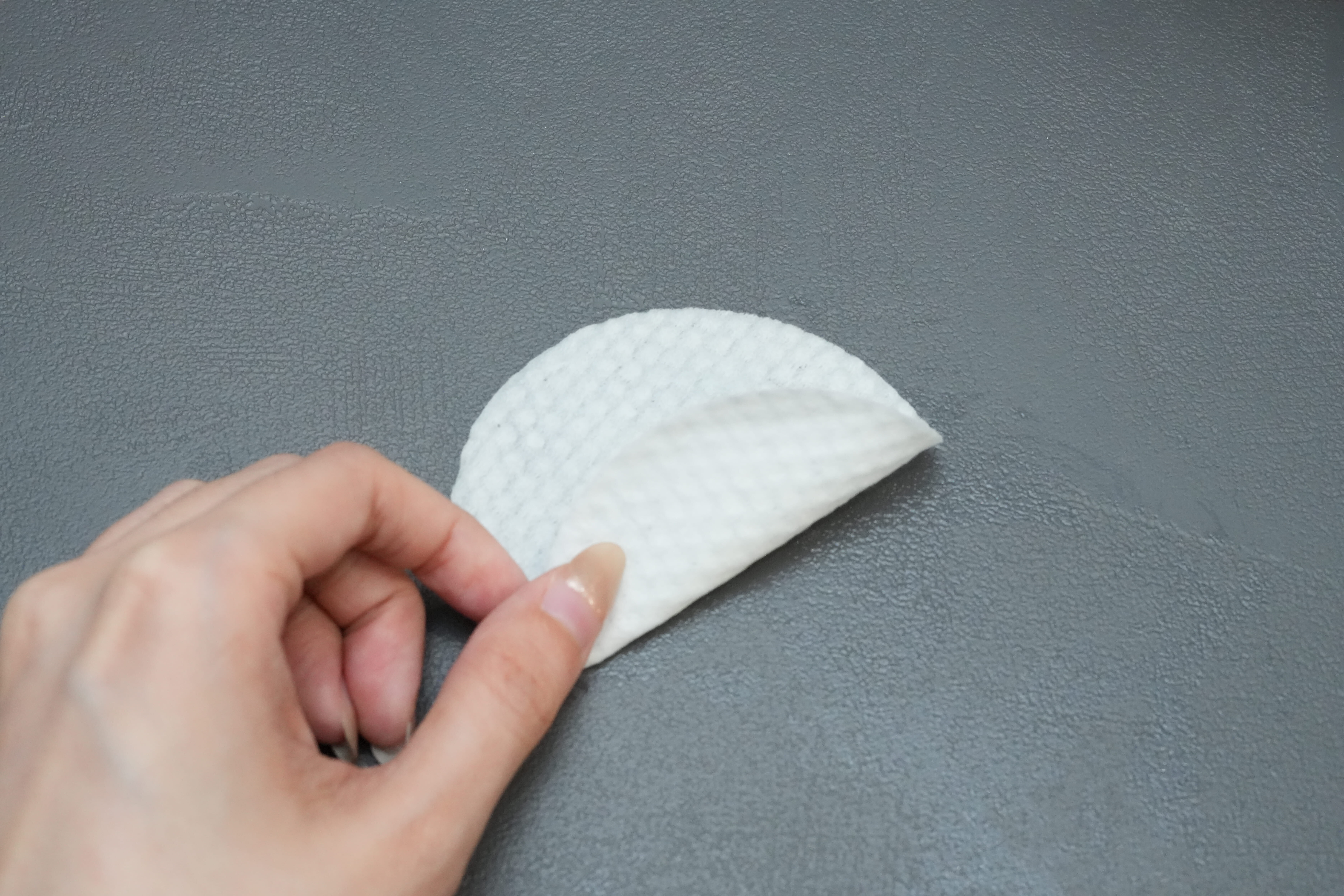 珍珠紋面,用來輕柔帶走全臉底妝和定妝噴霧的薄膜層。平滑面,用來濕敷眼唇,那些被口罩悶過又加了持妝力的唇色和眼線,按壓幾秒再擦,不用過度用力摩擦也快速卸乾淨。