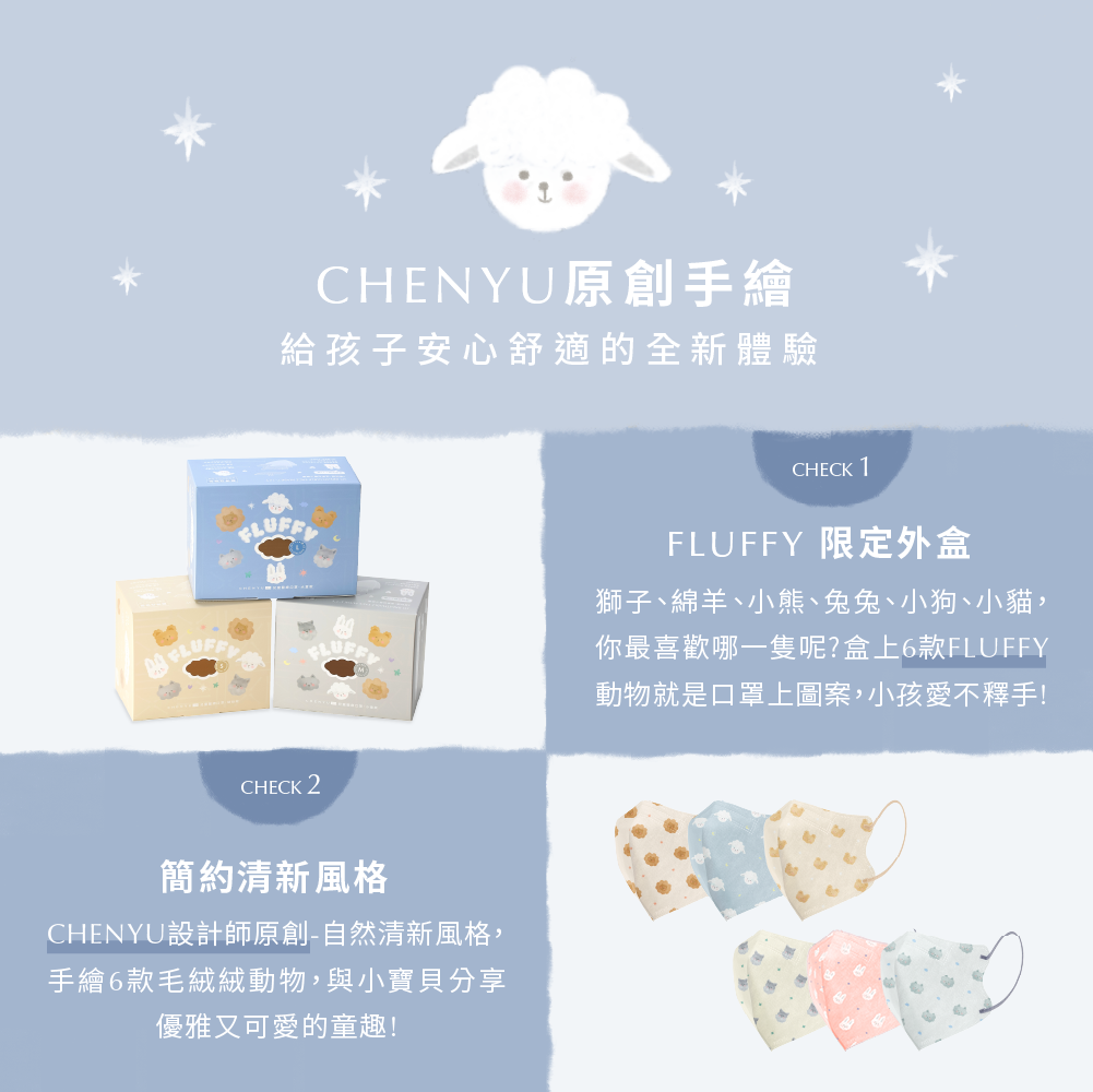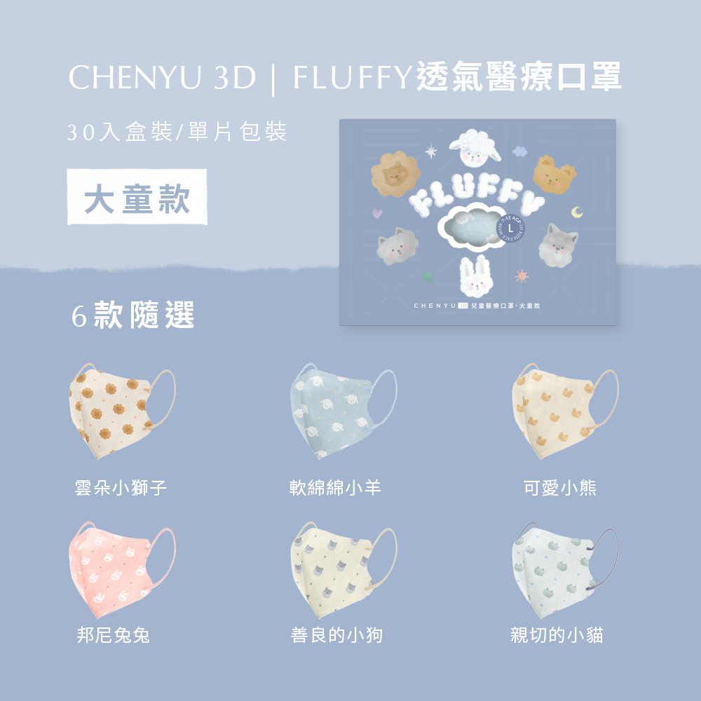 Fluffy手繪系列|CHENYU辰昱 3D醫療透氣口罩(30入) 7-12歲 - 邦妮兔兔